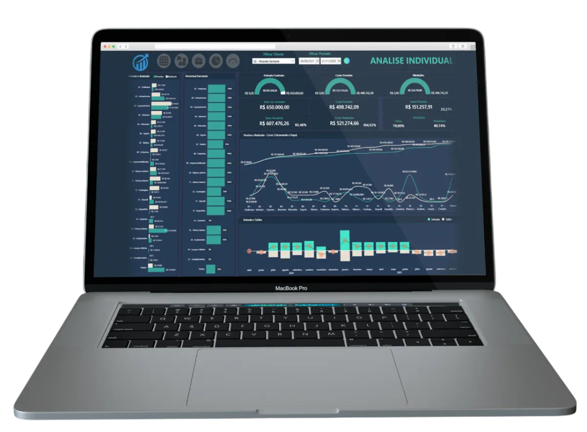 Planilhas são estáticas e manuais. O dashboard centraliza, automatiza e visualiza de forma inteligente.