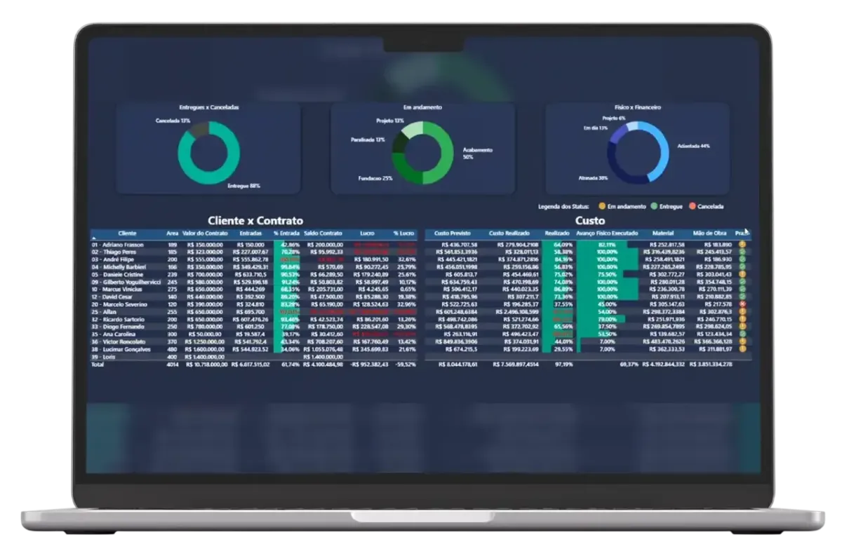 Alertas de desvio de custo e prazo